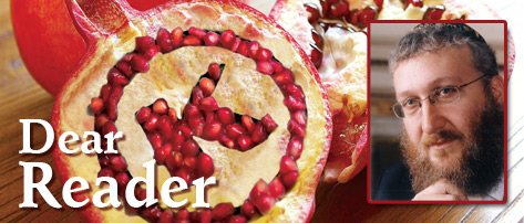 Speaking of customs, Rabbi Zushe Blech, a guest contributor, enlightens us about the unique custom of dipping an apple into honey, as opposed to any other fruit. Later, read why we choose a pomegranate for our new fruit and what is so special about the pouring of water on the Mizb’each as opposed to wine. In this issue we’ve got you covered from your first sit-down dinner of the year, to a bite on the run in a Pop-up Sukkah.